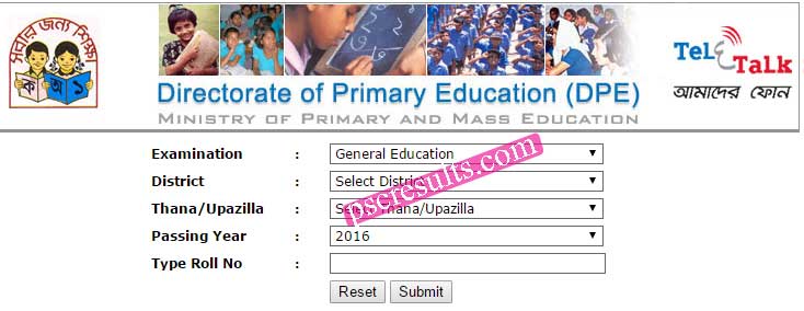 After Successful Visiting the Link of Teletalk Powered DPE Portal. You will show some Methods which require selecting with valid info. After filling up the Result Check Page Data Completely, Just Click on the Submit button to Check your PSC Exam Result 2016 from www DpeResult Teletalk Com BD.
